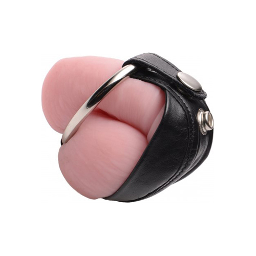 Met deze Lederen penis dwangbuis voorkom je dat je speelkameraadje in het opwindende bondagespel wat al te snel actie onderneemt. De Lederen penis dwangbuis wordt rond je nog slappe lid en ballen gewikkeld, waarbij er een stalen ring om je scrotum wordt geplaatst. De leren dwangbuis is vast te klikken, waarna je penis geen kant meer uit kan. Hierdoor kun je geen volledige erectie krijgen en ben je overgeleverd aan de goedheid van je partner om tot volle bloei te komen. Eigenschappen Lederen penis dwangbuis:Materiaal: leer (dwangbuis) en staal (ring) Kleur: zwart en zilver Diameter stalen ring: 5,1 cm