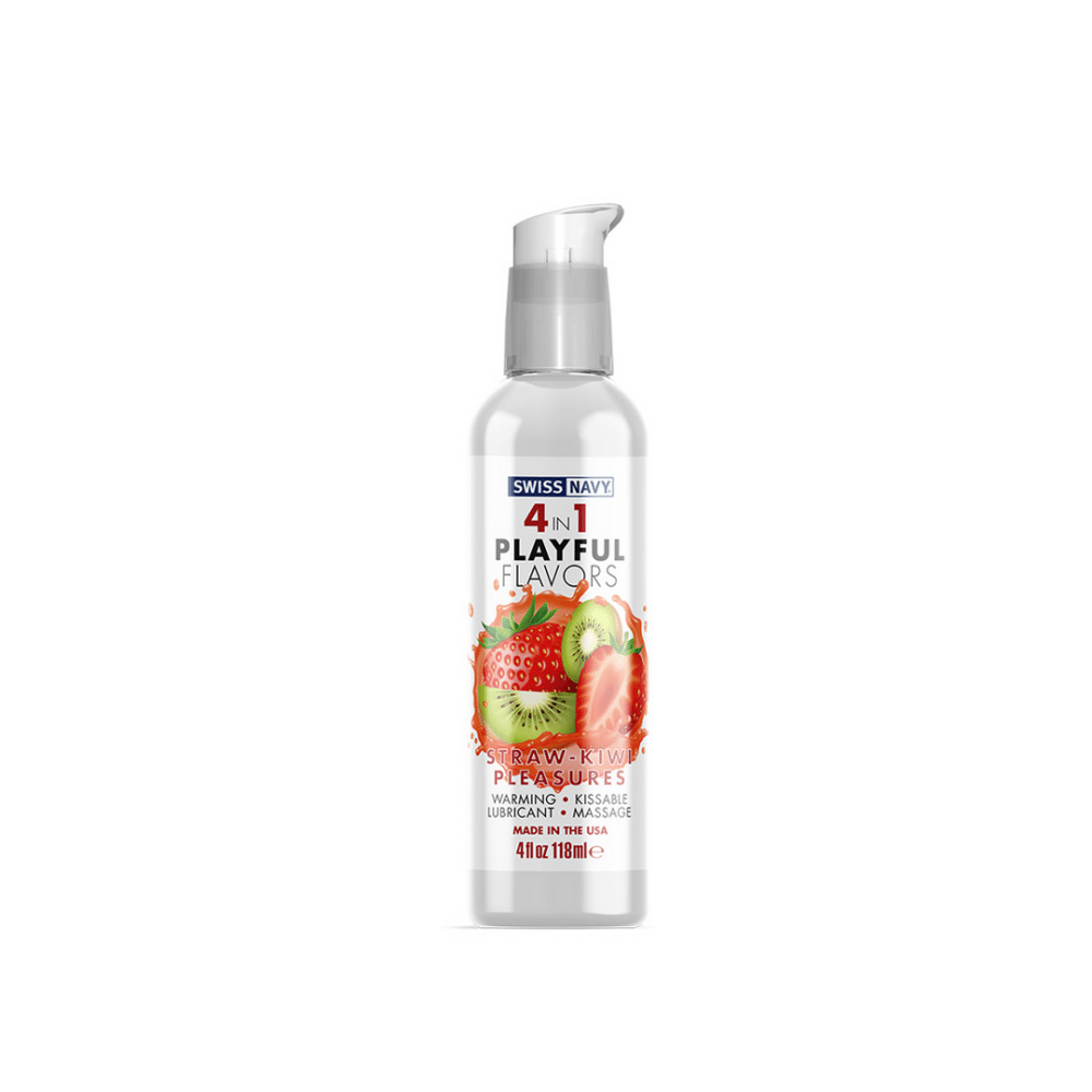 4 in 1 Playful Flavors – Lubricant with Straw-Kiwi Pleasures Flavor – 4 fl oz / 118 ml