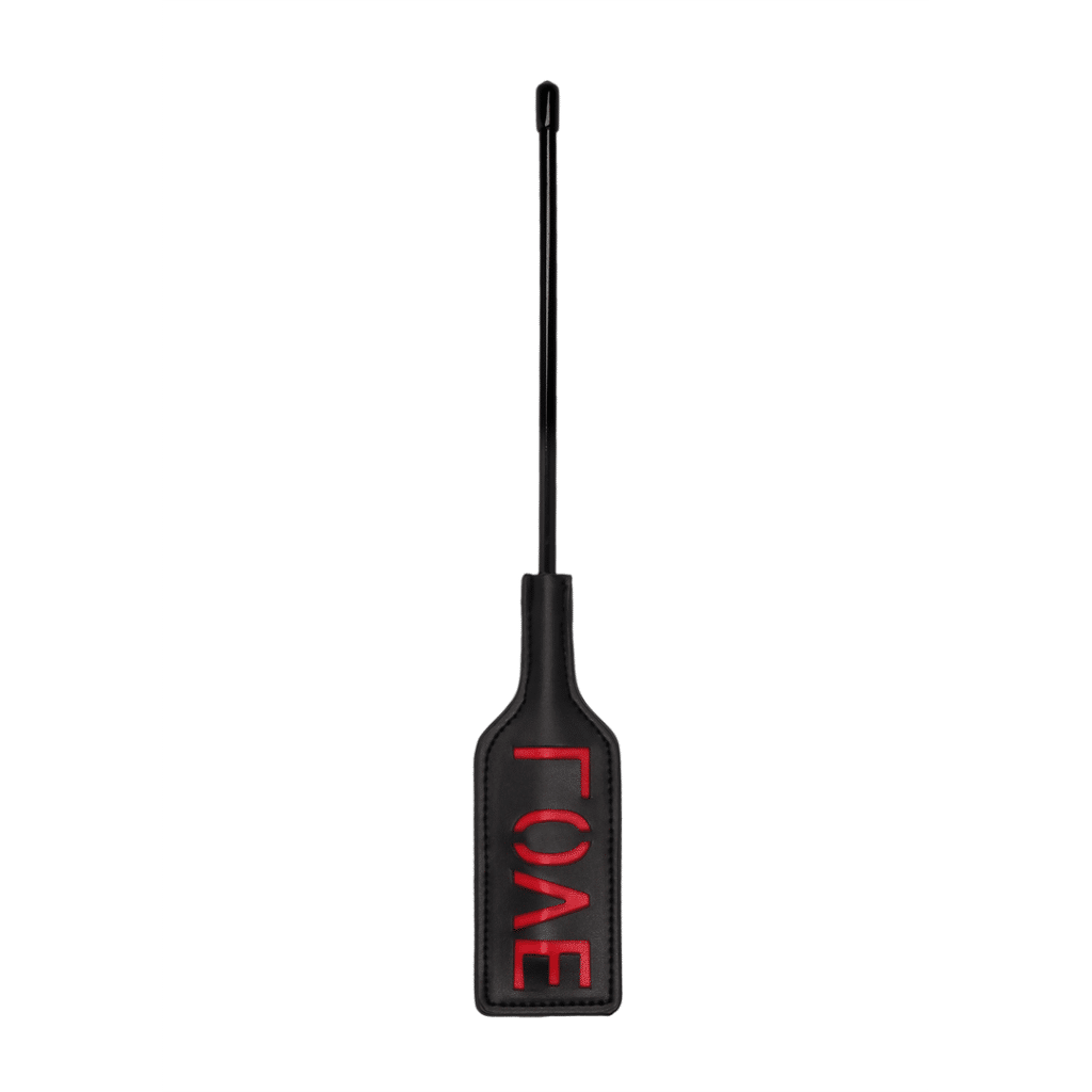 Leave a lasting impression on your partner. This short handled rectangular shaped crop is the perfect way to discipline your partner. Leave a lasting impression on your sub. The word LOVE is reversed so it will show up on their skin